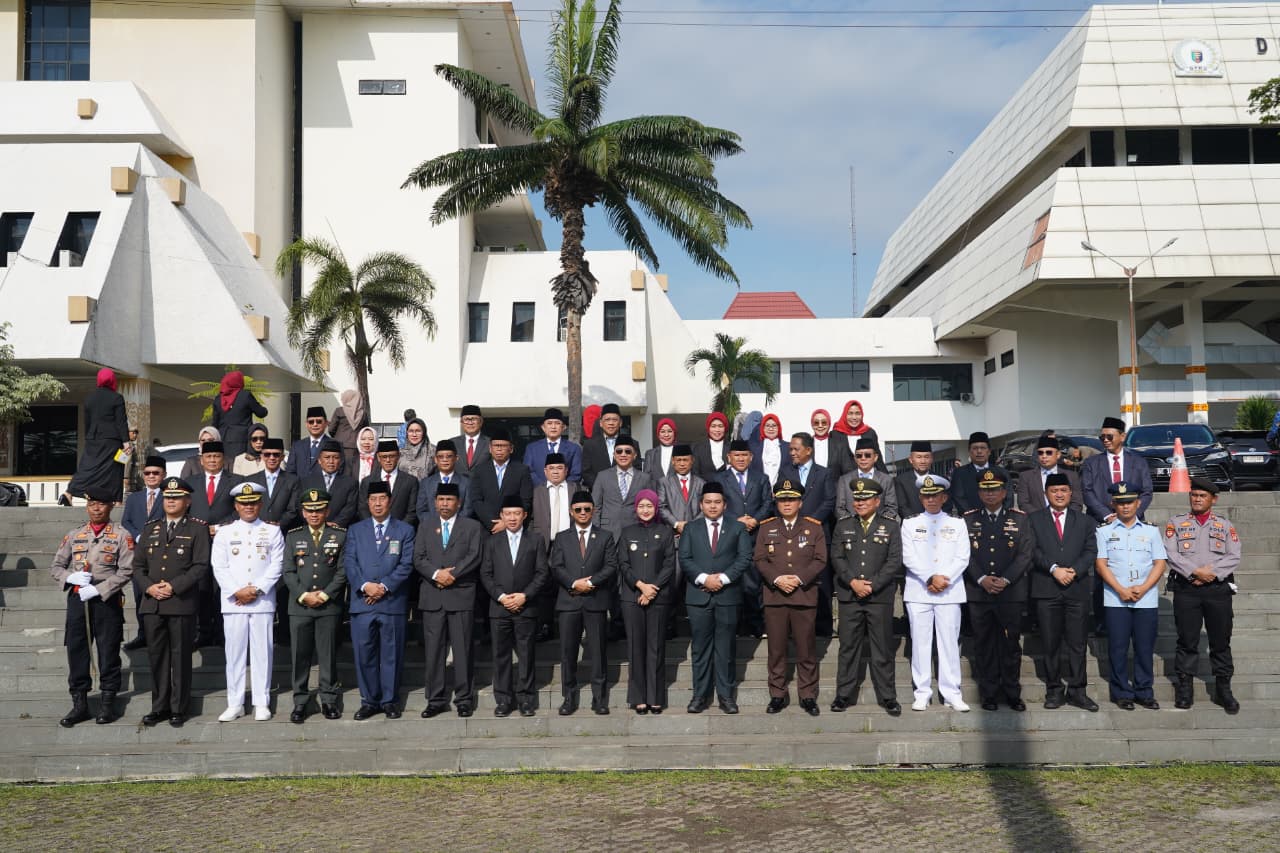 Lampung – Kepala Staf Korem 043/Gatam Kolonel Inf Sumarlin Marzuki, S.E., M.Han., bersama Forkopimda Provinsi Lampung menghadiri upacara peringatan Hari Kesaktian Pancasila yang digelar di Lapangan Korpri Kantor Gubernur Lampung, Jl. Wolter Monginsidi, Teluk Betung, Bandar Lampung, Rabu (01/10/2025).