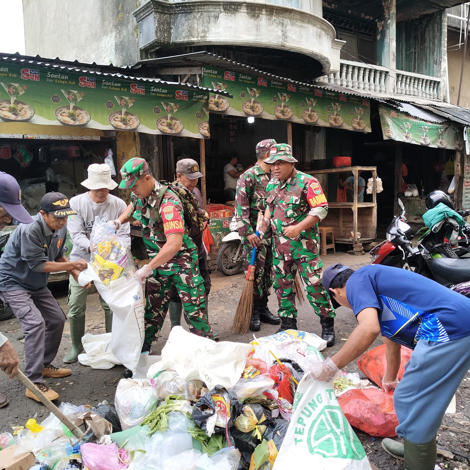 BANDAR LAMPUNG – Guna menciptakan lingkungan pasar yang bersih, sehat, dan nyaman bagi masyarakat, Personil Koramil 410-05/Tanjung Karang Pusat (TKP) melaksanakan kegiatan “Kamis Bersih” di sekitar Pasar Smep, Kelurahan Suka’ Jawa Baru, Kecamatan Tanjung Karang Barat, Bandar Lampung. Kegiatan yang berlangsung pada Kamis, 2 Oktober 2025 ini merupakan bagian dari program unggulan Kodim 0410/Kota Bandar Lampung (KBL).