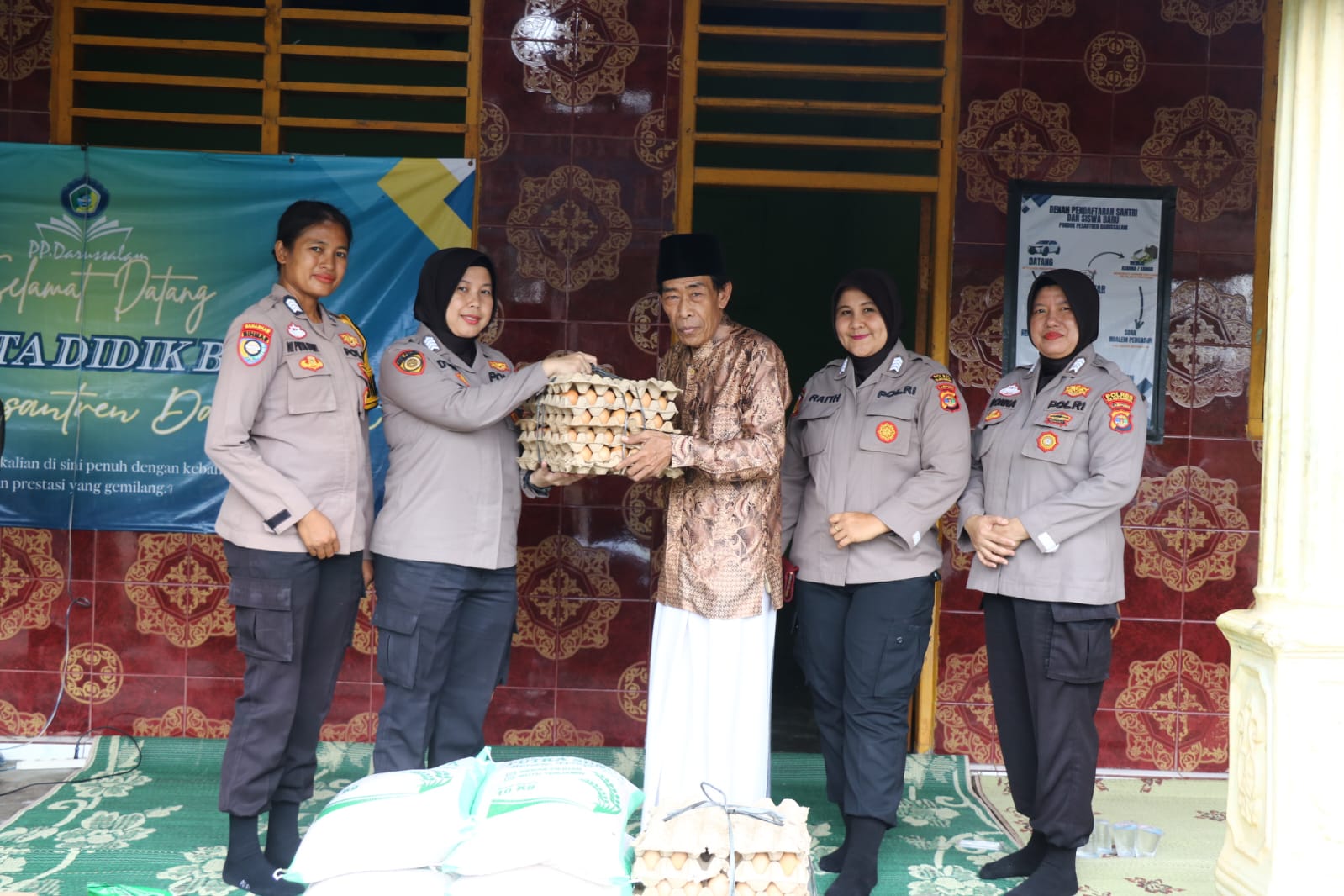Tak hanya menyerahkan bantuan, Polwan juga berdialog ringan dengan para santri, berbagi motivasi dan semangat untuk terus belajar dan berkontribusi bagi bangsa.