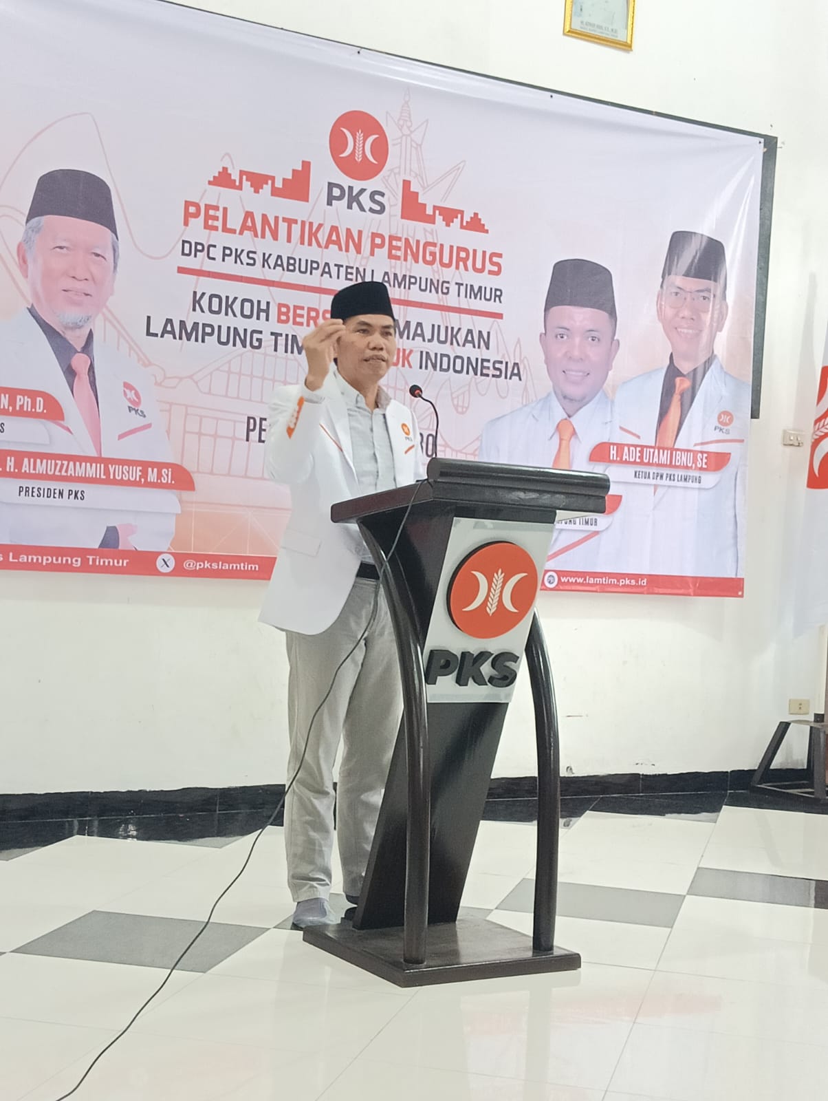 Lampung Timur, 8 November 2025 — Ketua DPW PKS Lampung, Ade Utami Ibnu, mendorong seluruh pengurus DPC di Lampung Timur agar membangun pola gerak yang solid, terukur, dan konsisten dalam pelayanan publik. Arahan itu disampaikan saat pelantikan 24 Dewan Pengurus Cabang PKS se-Lampung Timur di kantor DPD PKS Lampung Timur.