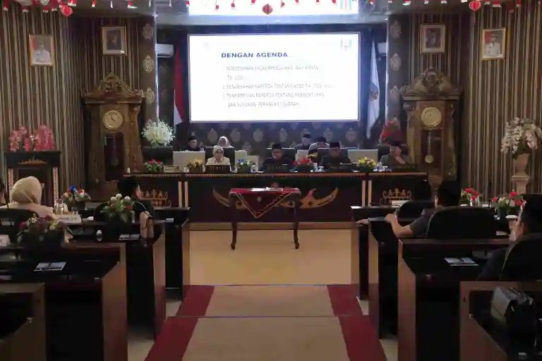 Bupati Way Kanan, Ayu Asalasiyah, S.Ked., menghadiri Rapat Paripurna Pengesahan Program Pembentukan Peraturan Daerah (Propemperda) Kabupaten Way Kanan Tahun Anggaran 2026 sekaligus Rapat Paripurna Pengesahan Rancangan Peraturan Daerah (Raperda) tentang APBD Kabupaten Way Kanan Tahun Anggaran 2026. Kegiatan tersebut berlangsung di Ruang Buway Bahuga DPRD Kabupaten Way Kanan, Senin (24/11/2025).