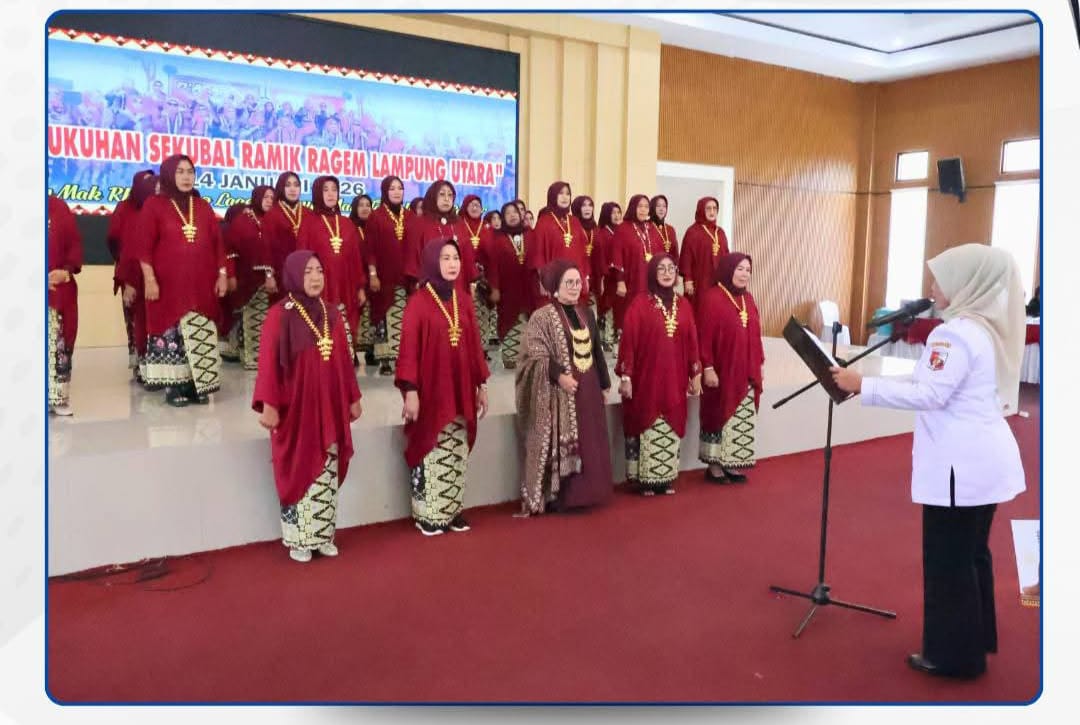 Kotabumi – Pj. Sekretaris Daerah Kabupaten Lampung Utara Dra. Dina Prawitarini, M.M., mengukuhkan Perkumpulan Sekubal Ramik Ragem Lampung Utara di Gedung Pusiban Agung, Rabu 14 Januari 2026.