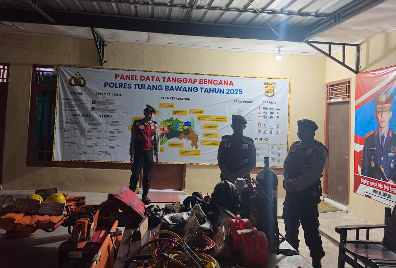 Tulang Bawang – Sebagai wujud nyata kehadiran Polri di tengah masyarakat, Satuan Samapta Polres Tulang Bawang menggelar Piket Posko Tanggap Darurat Bencana Hidrometeorologi yang berlangsung di Mako Polres Tulang Bawang, Kamis malam (15/01/2026).