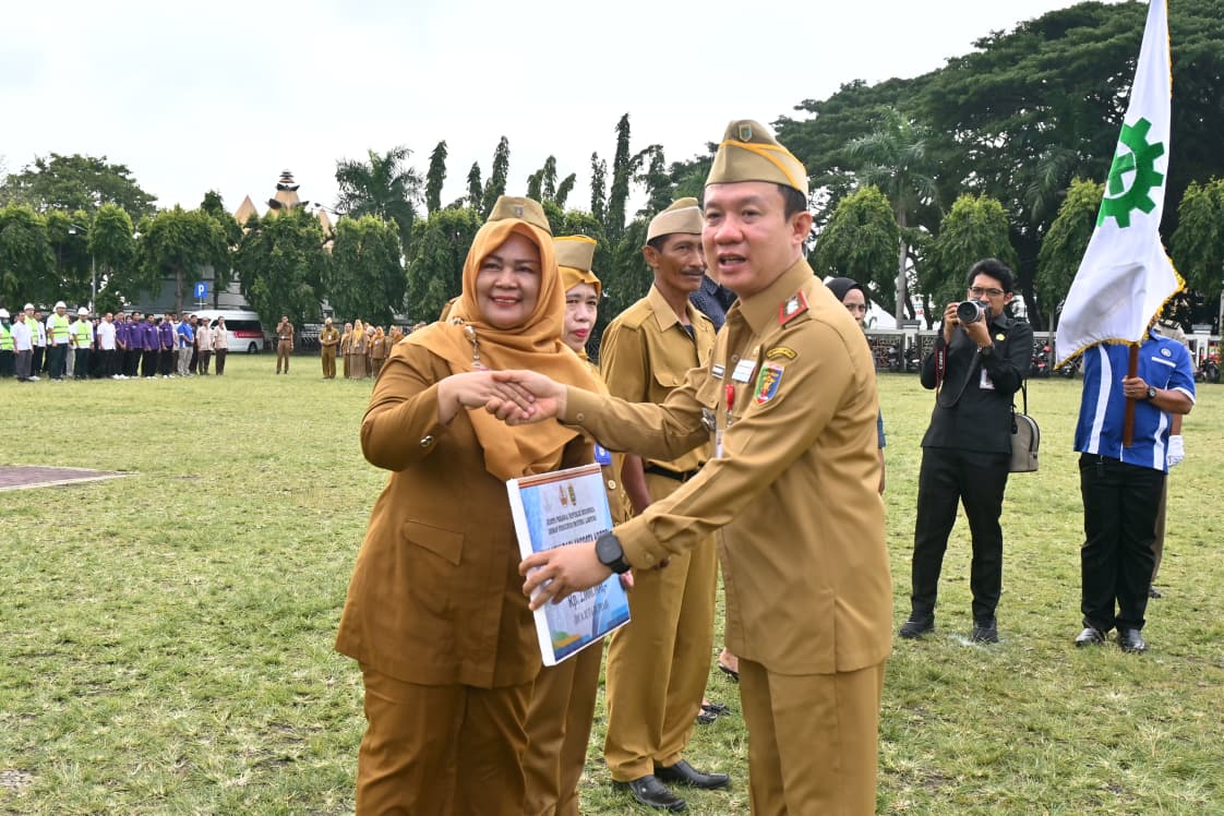 Di kesempatan yang sama, juga dilakukan penyerahan Tali Asih bagi ASN yang memasuki masa purna bakti dan santunan bagi keluarga ASN yang meninggal dunia serta santunan BPJS Ketenagakerjaan.