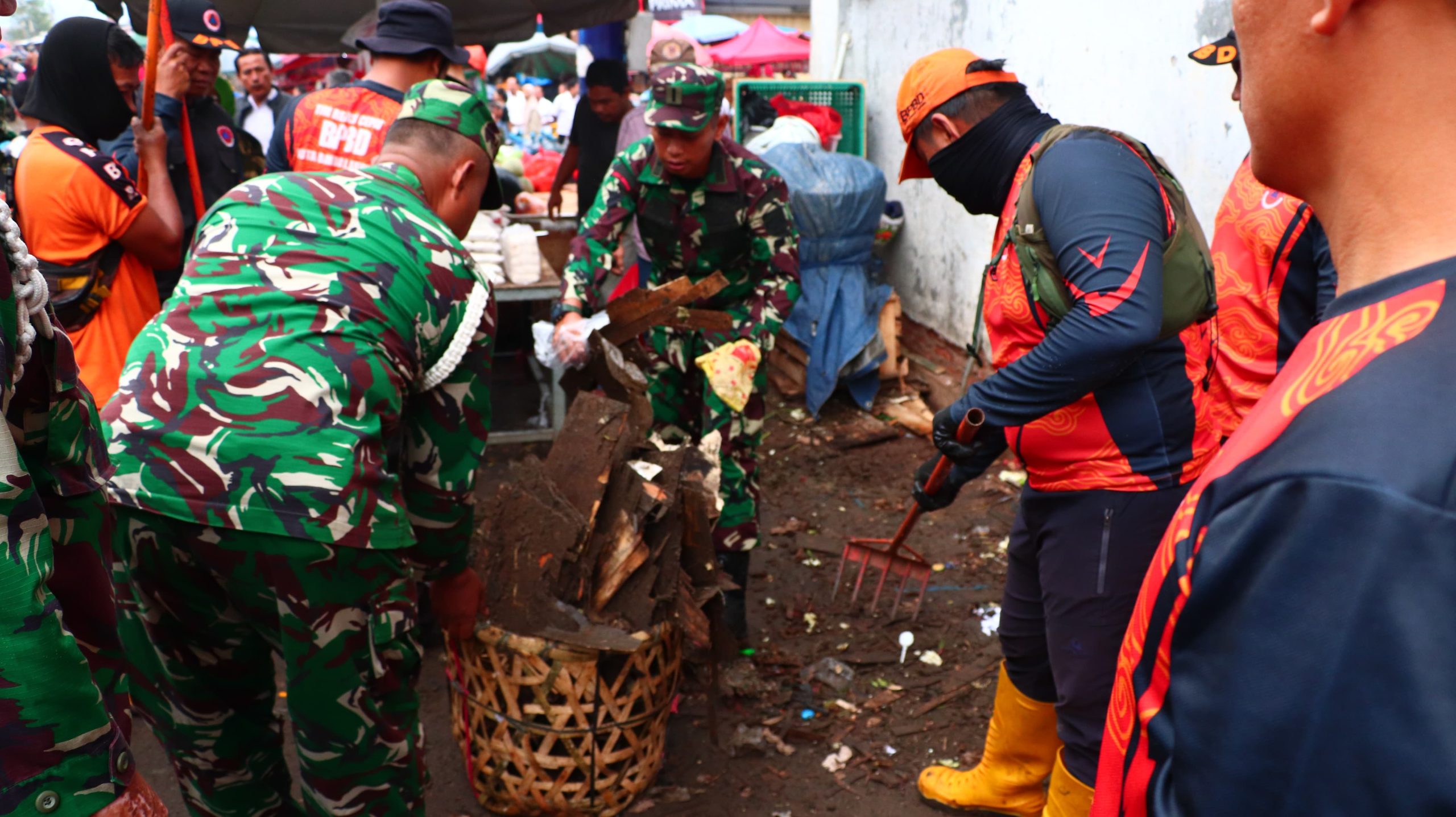 Sasaran utama pembersihan difokuskan di dua titik utama, yakni Pasar Smep dan Pasar Pasir Gintung. Namun, perhatian khusus juga diberikan pada jalur-jalur penghubung menuju Pasar Bambu Kuning yang selama ini kerap menjadi titik tumpukan sampah liar. Anggota Babinsa terlihat bahu-membahu membersihkan saluran air yang tersumbat serta menyapu area pedagang kaki lima.