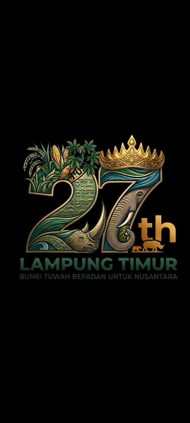 Angka “27” dalam logo ini mengandung filosofi mendalam. Tidak hanya menandai usia, tetapi juga mencerminkan kekuatan sektor agraris sebagai tulang punggung perekonomian daerah. Representasi hasil pertanian seperti padi, jagung, dan singkong menjadi simbol kemandirian pangan sekaligus potensi unggulan yang terus dikembangkan masyarakat Lampung Timur.