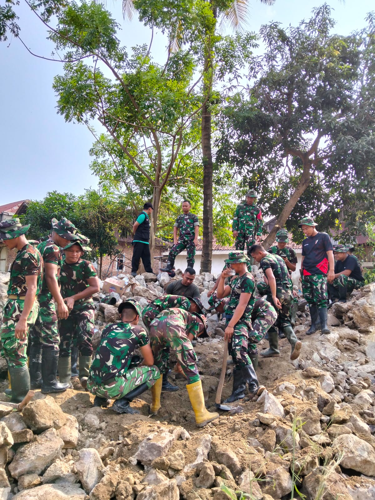 Salah satu aksi terbaik ditunjukkan oleh Babinsa Kelurahan Garuntang, Pelda Sulindra, dari Koramil 410-02/Teluk Betung Selatan. Pada Minggu, 19 April 2026, ia memantau langsung proses pemecahan runtuhan tembok penahan air yang roboh pasca banjir besar pada Selasa, 14 April 2026 di Jalan Pandawa RT. 06 LK. I, Kelurahan Garuntang, Kecamatan Bumi Waras.